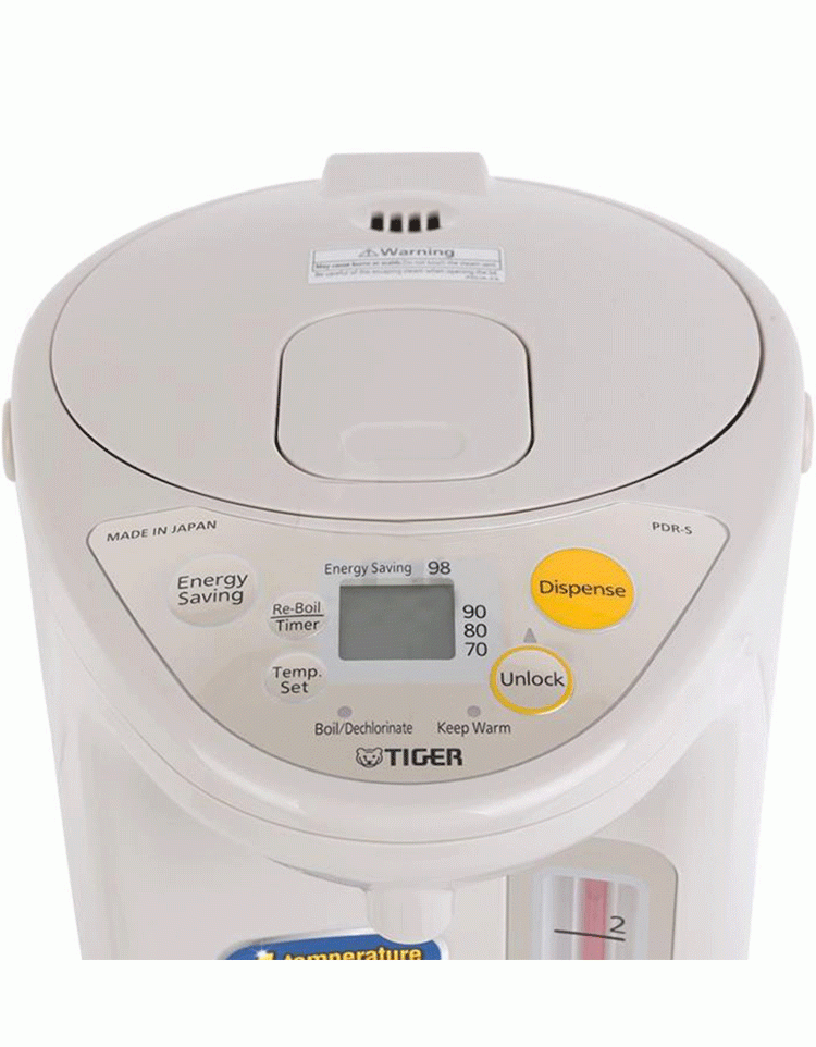Bình thủy điện tử cao cấp Tiger PDR-S40W với thiết kế bảng điều khiển điện tử kèm màn hình LCD hiện đại dễ dàng sử dụng tích hợp nhiều tính năng tiện lợi cho bạn như chức năng nấu sôi lại và chức năng nấu khử mùi Clo trong nước đảm bảo sức khỏe cho cả gia đình bạn. Hơn thế nữa, Tiger cũng tích hợp 4 chế độ cài đặt nhiệt độ giữ ấm “98ºC, 90ºC, 80ºC & 70ºC“ phù hợp với từng loại nước uống để pha chế.